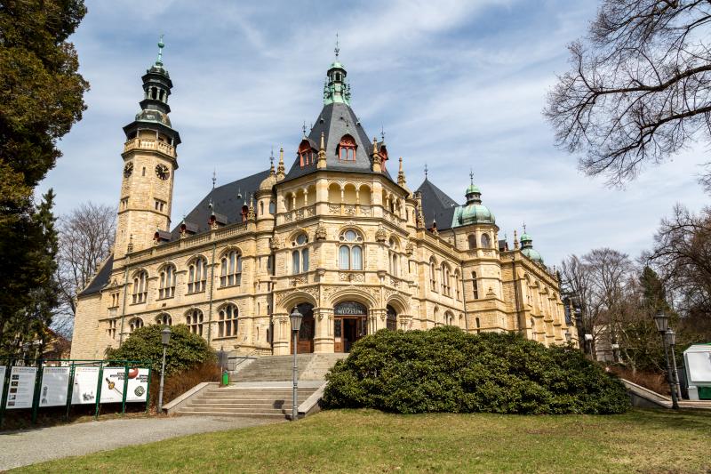 Kuratorium Severočeského průmyslového muzea v roce 1895 vybralo pro stavbu nové budovy návrh vídeňského architekta Friedricha Ohmanna. Stavba probíhala mezi lety 1897–1898 a realizovala ji liberecká firma Gustava a Ferdinanda Mikschových podle prováděcích plánů dopracovaných berlínským ateliérem Griesbach & Dinklage. Rozsáhlé historizující stavbě dominuje věž, která je kopií staré liberecké radnice zbořené roku 1892 a zahrnuje v sobě i volnou repliku klasicistního soukenického domu charakteristického pro Liberec. Johann Liebieg starší zastával funkci prezidenta muzejního kuratoria a podílel se na nákupy jeho sbírek ve Vídni. Heinrich Liebieg odkázal muzeu svou sbírku uměleckých kovů, starožitnosti z frankfurtské vily a také finanční obnos pro rozšiřování muzejních sbírek.